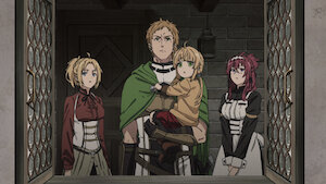 Ruijerd, Rudeus and Eris arrive in a bustling city and decide to join the Adventurers’ Guild, but they quickly become the target of mockery.
