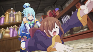 이러다가 얼어 죽겠어. 가난이 지긋지긋한 카즈마가 새 스킬을 배우러 어떤 가게를 찾아간다. 그런데 동행한 아쿠아는 가게 주인을 보자마자 소리부터 지르고 멱살을 잡는데.