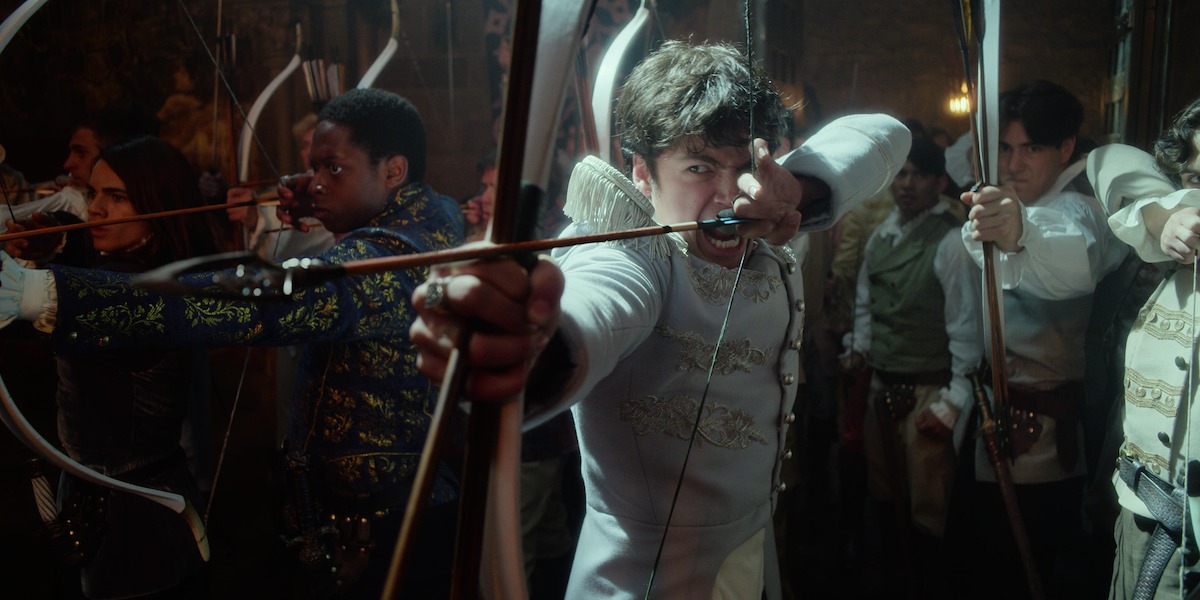 At the School for Good, an archer’s arrow flies straight into the bull’s-eye on a target if you are pure of heart, which all princes are. That is why Prince Tedros (Jamie Flatters) is unbothered when Sophie distracts him during practice.
