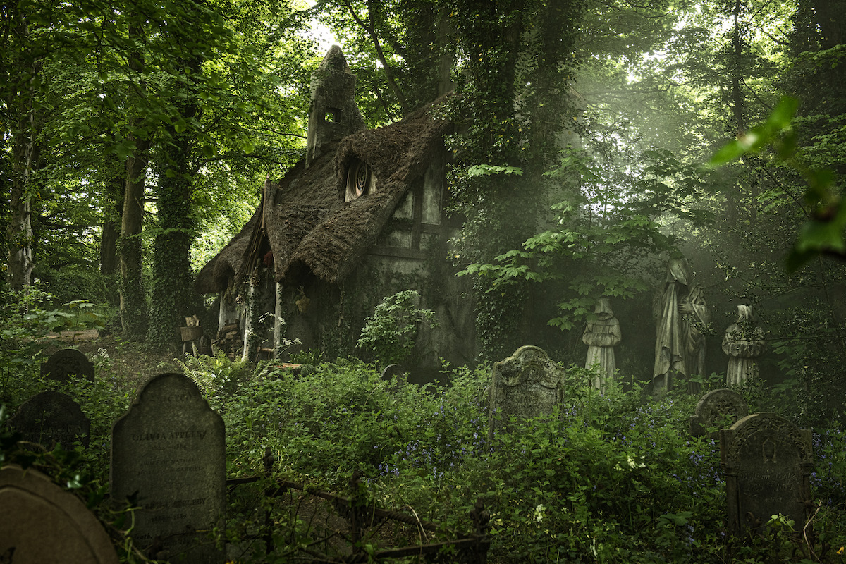 Agatha’s residence in a humble cottage in Gavaldon. Yes: she, her mother, and her cat Reaper live by graves in a cemetery. Eerie, indeed.
