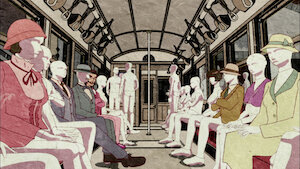 La gente celebra la inauguración del nuevo subterráneo, que hace su primer viaje con pasajeros. Todos, excepto siete de ellos, incluido el alcalde, desaparecen.