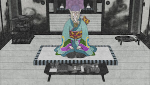 Cuando un barco hueco que contenía un sacrificio humano para los espíritus ayakashi aparece frente al barco mercante, los pasajeros se reúnen para echar un vistazo al interior.