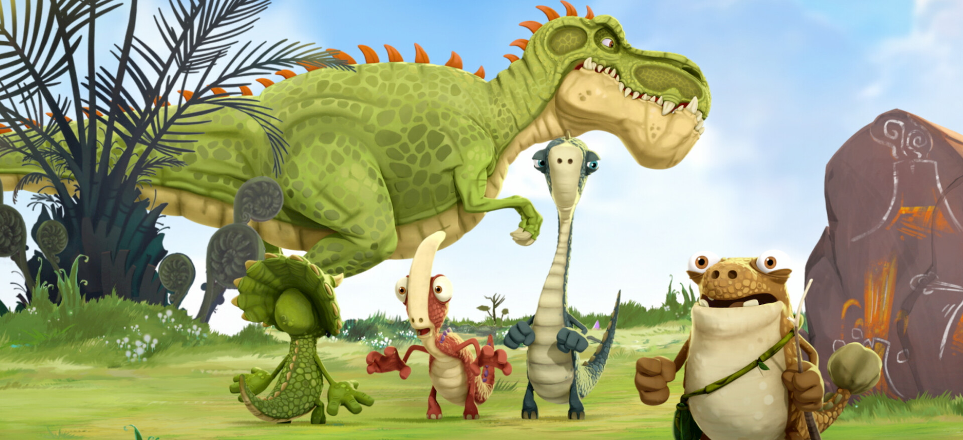 Cuatro amigos prehistóricos pasan por una serie de aventuras mientras intentan revelar el misterio sobre una gran y feroz criatura. Basado en el libro de Jonny Duddle.
